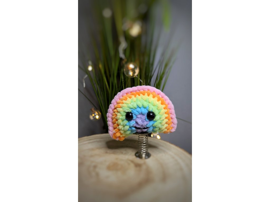 Háčkovaná dekorace na pružince, vhodný například na palubní desku auta, nebo jako antistresík, třeba do kanclu na stůl :)