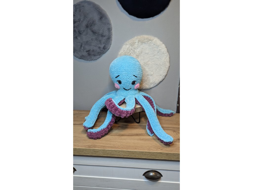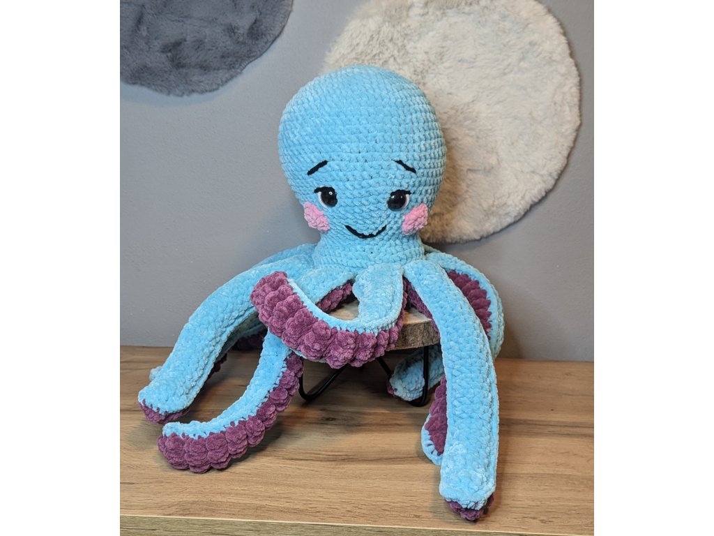 Výrobek je háčkovaný z certifikované příze, plněný dutým vláknem s bezpečnostními očky.
