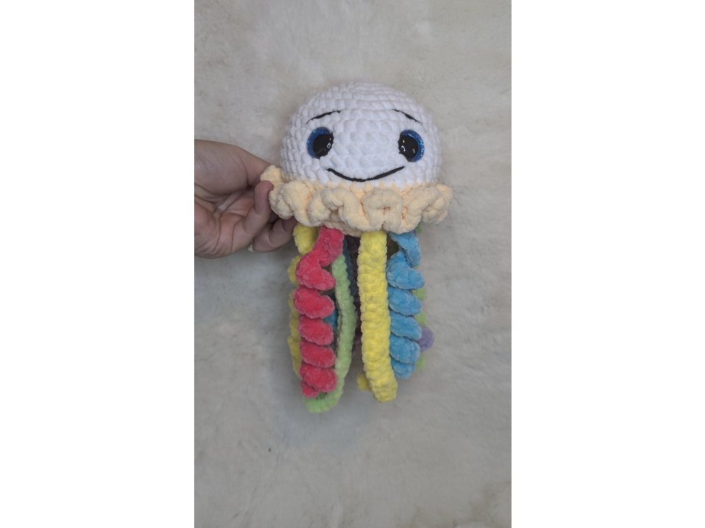Výrobek je háčkovaný z certifikované příze, plněný dutým vláknem s bezpečnostními očky.